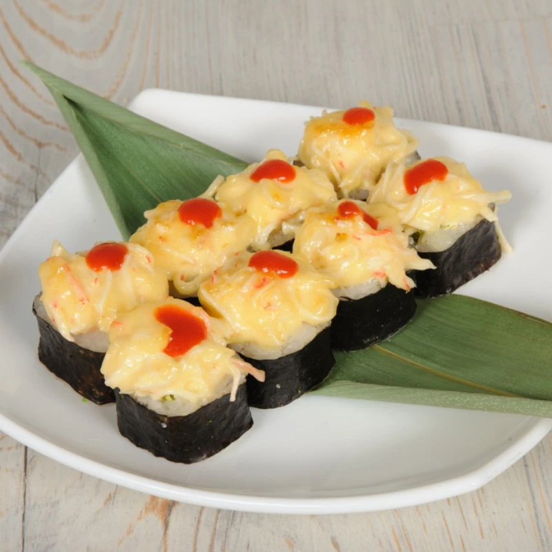 нори, рис, сыр кременте, огурец, пекинская капуста, майонез хелманс, снежный краб, шрирача.