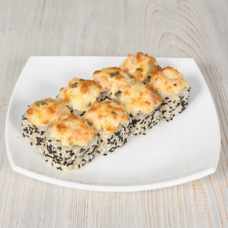 рис, нори, сыр, ½ креветка, ½ жареный тунец, кунжут, лосось, чеснок, зелень, хелманс, моцарелла.