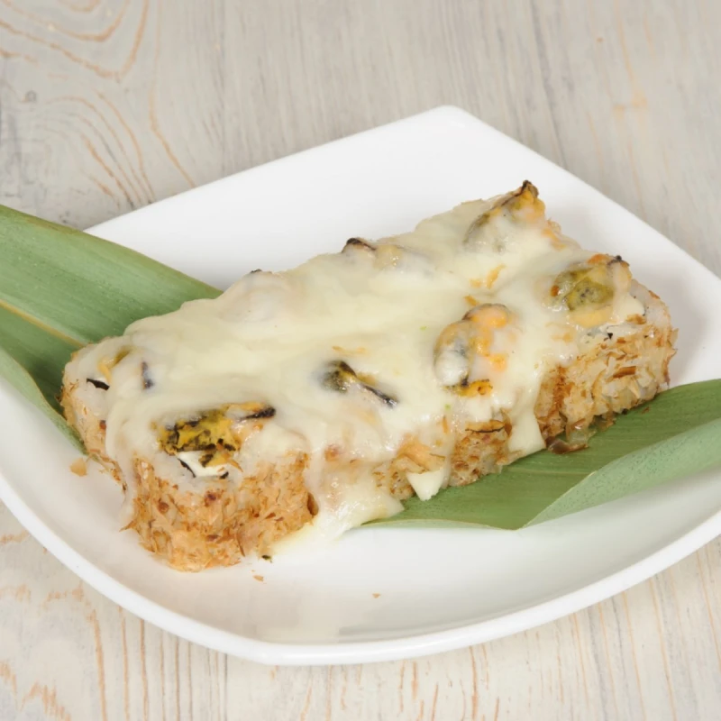 рис, нори, сыр кременте, такуан, стружка тунца, мидии, сыр моцарелла.