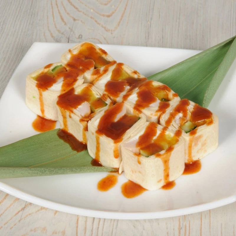 тортилья, сыр кременте, такуан, огурец, курица запеченная, соус лемонграсс.