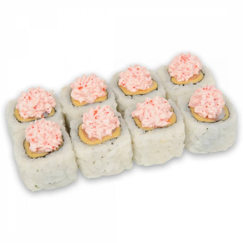 плавленый сыр, лосось, креветка, сливочный сыр, тобико красная.
