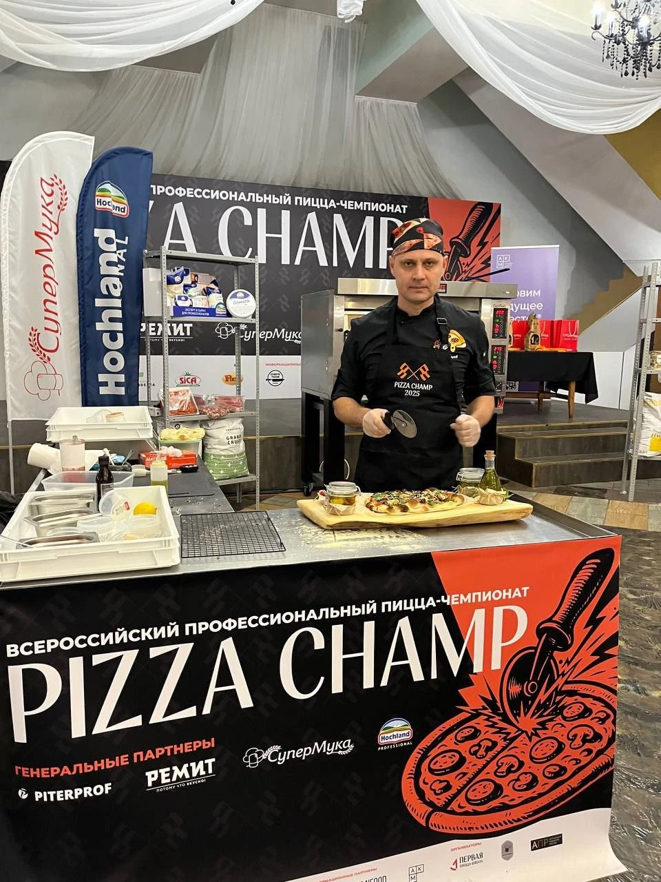 Мы заявились в дисциплине Римская пицца ala palla. Кстати, вот представьте)) Пиццу, которую у нас вы можете взять от 350 рублей — фактически за счет того, что мы ввели это всё в меню...Нас позвали:))